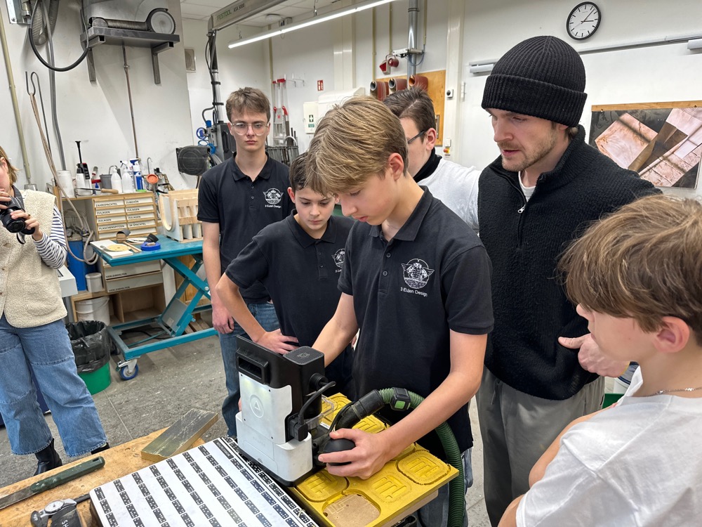 Die Holzwerkstatt unter der Leitung von Lars Brüggenmann-Singh (digitale Holzfertigung/Shaper) machte deutlich, wie präzise und kreativ man mit digitalen Werkzeugen arbeiten kann.