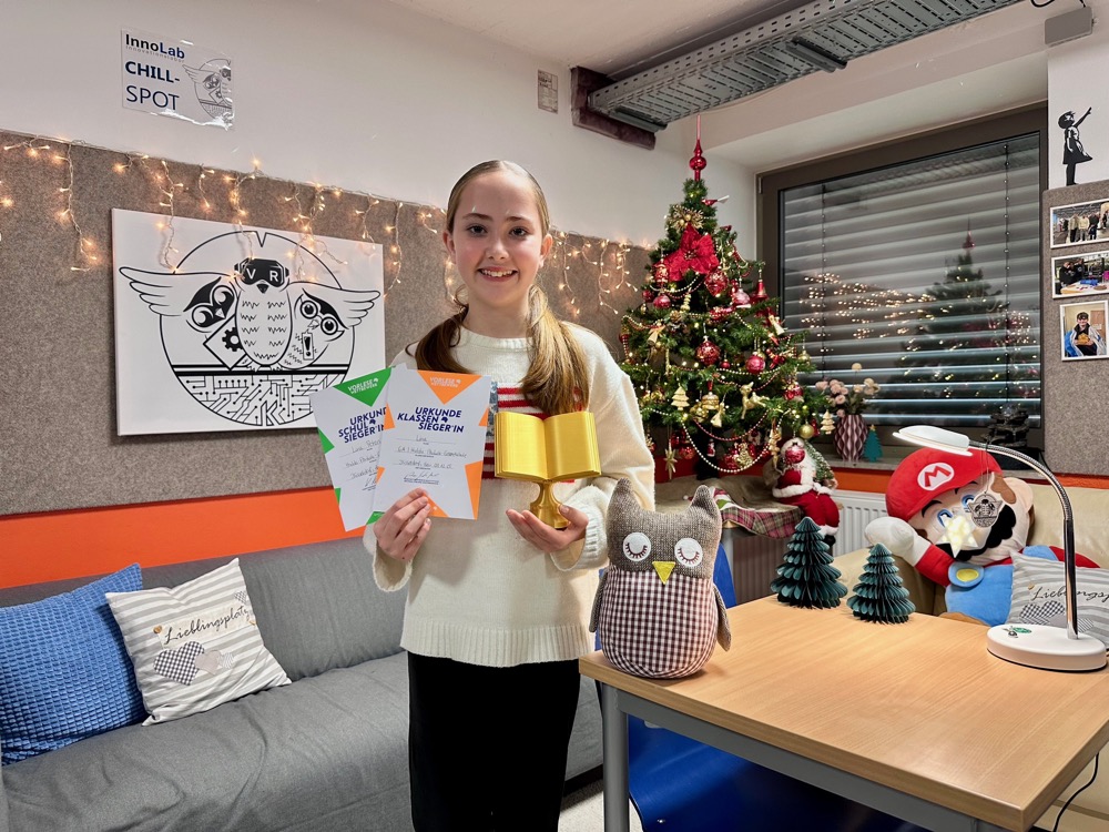Am Ende konnte Lina aus der Klasse 6a die Jury mit ihrem Vortrag besonders überzeugen und wurde zur Schulsiegerin gekürt. Wir gratulieren ihr herzlich zu dieser tollen Leistung und wünschen ihr für die kommenden Wettbewerbe weiterhin viel Erfolg und vor allem große Freude am Lesen.